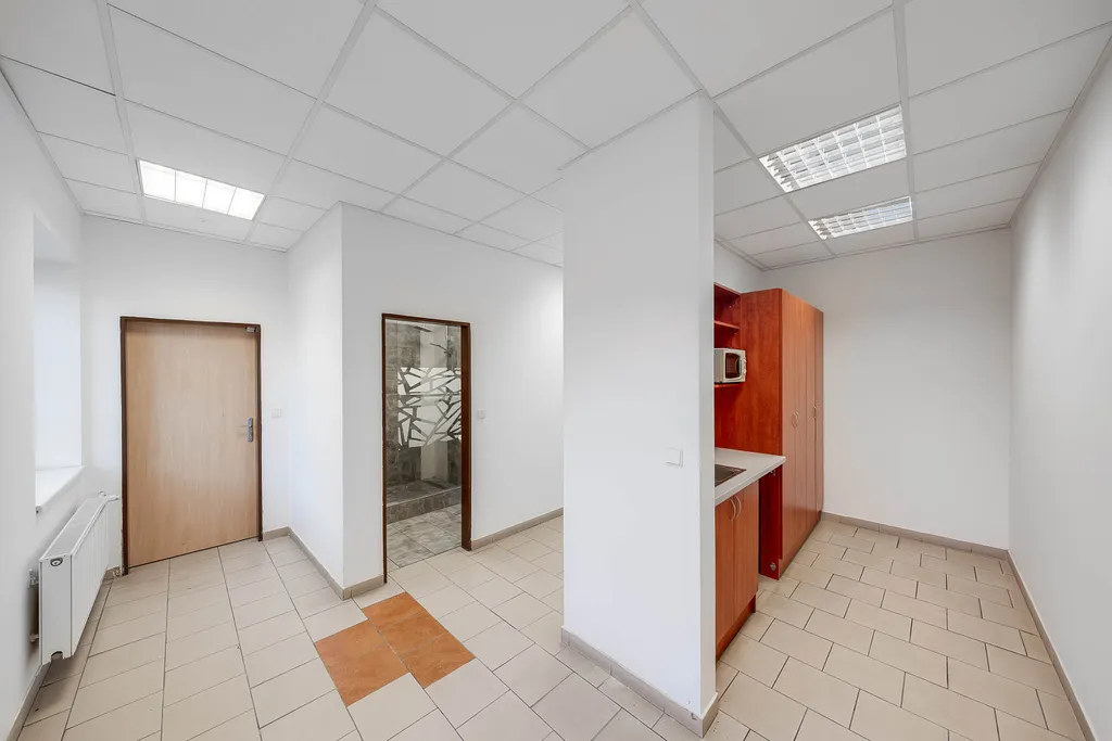 Kanceláře jsou umístěny v 2NP a mají bezpečnostní hlídací systém. K dispozici budete mít soukromý, uzavřený prostor se 2 kancelářemi (60 m² a 30 m²), zázemí s kuchyňkou, sprchou a WC. Kanceláře je možno využít na různé účely - projekční kanceláře, internetové obchody, IT firmy a další firmy poskytující rozlišné služby v oblasti nemovitostí, školení apod.
