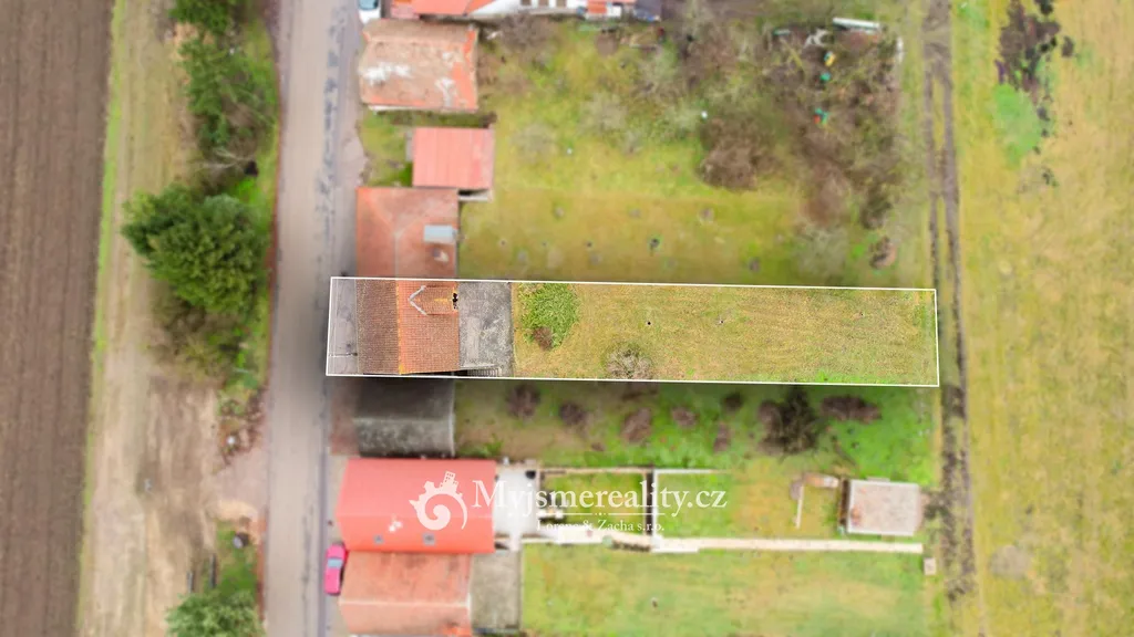 - Pozemek : cca 7,5 m šířka × 36 m délka