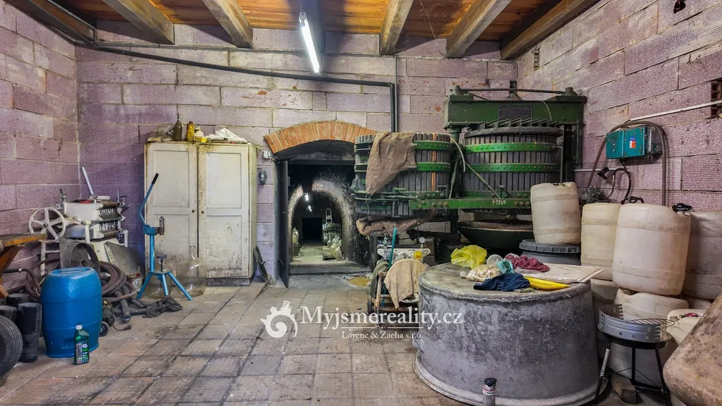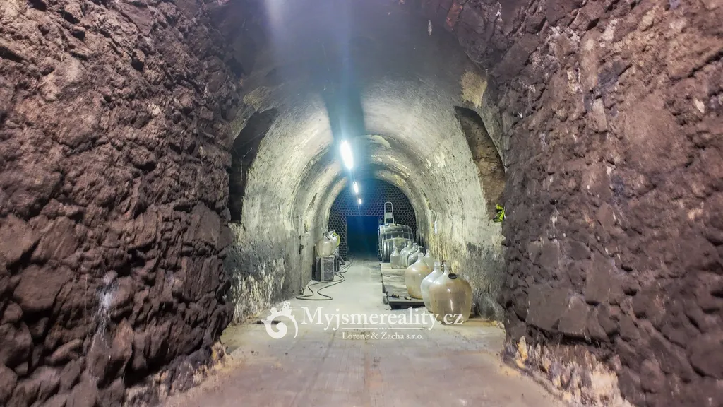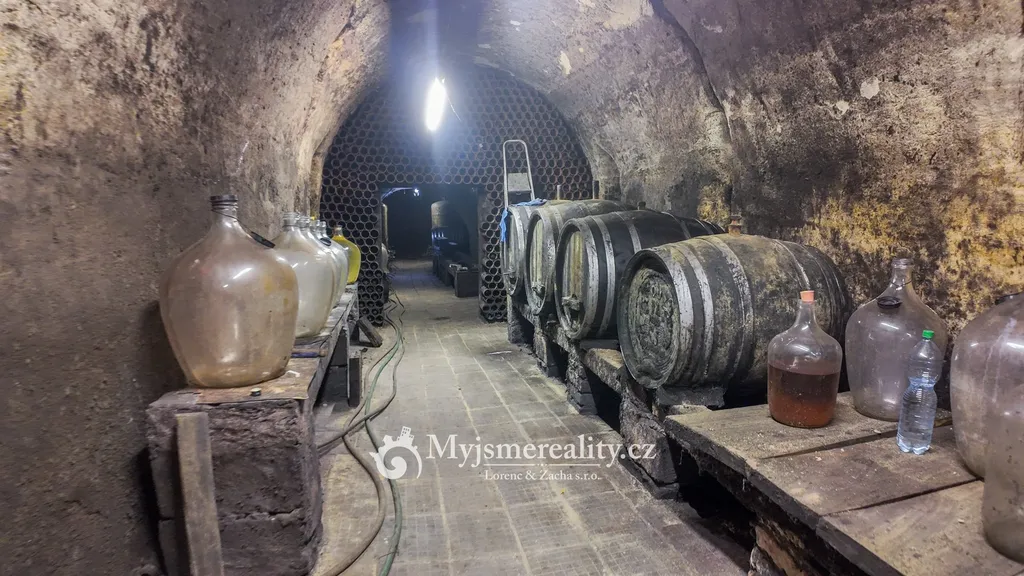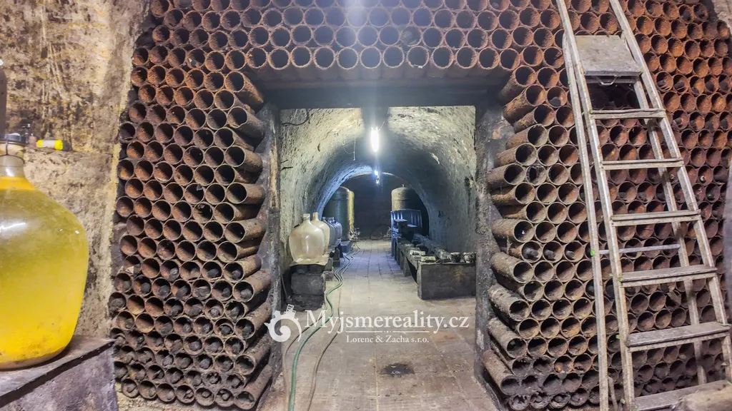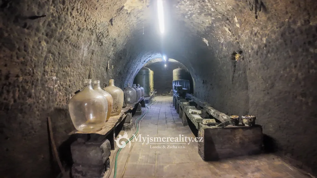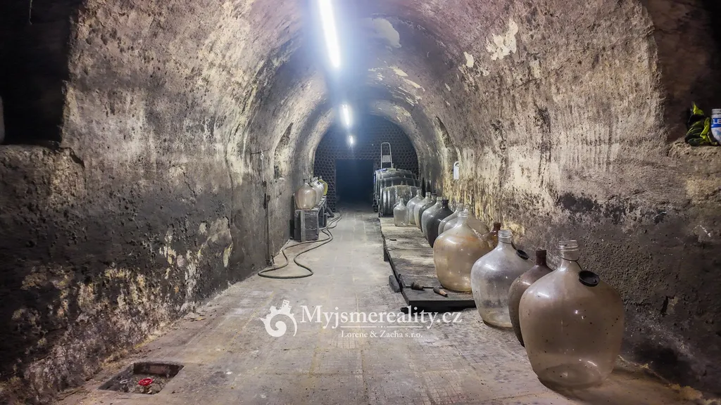 - Sklep: cca 3,5 × 30 m – tradiční hloubený sklep, stabilní teplota po celý rok