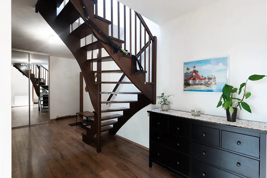 Byt je nadstavbou z roku 1996, která v roce 2020 prošla kompletní a velmi kvalitní rekonstrukcí. Během ní byla pozměněna dispozice, vznikly nadstandardně řešené koupelny, praktické úložné prostory, moderní kuchyň a všechny místnosti byly osazeny klimatizací Daikin. Místo se našlo také na saunu. Byt nabízí promyšlený mix velkorysých otevřených ploch i útulných zákoutí. Pojďme se na něj podívat podrobněji.