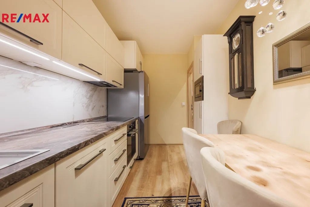 Ve výhradním zastoupení Vám nabízíme k prodeji po kompletní rekonstrukci byt v osobním vlastnictví o dispozičním řešení 3+1 s lodžií na ulici Vlkova, Brno – Líšeň, který se nachází v 3.NP ze 7.NP panelového domu, který prošel kompletní revitalizací. Nemovitost disponuje třemi neprůchozími pokoji, vstupní chodba (6,62m2) kde se nachází vestavná zrcadlová skříň, (zůstává součástí prodeje) dále po levé straně se nachází ložnice (12m2), obytná místnost (17,5m2) se vstupem na zasklenou lodžii o výměře 6m2. Naproti chodbě se nachází menší pokojík (8m2). Dále vstup do kuchyně, kde se nachází nová kuchyňská linka (9,30m2) na míru se všemi vestavěnými spotřebiči značky Electrolux, indukční varná deska, odsavač, horkovzdušná trouba, myčka nádobí značky Electrolux a LG americká lednice, kuchyňská linka zůstane součástí prodeje se všemi spotřebiči, rok realizace 2021. Koupelna (2,70m2) prošla kompletní rekonstrukcí, zděné jádro se sprchovým koutem, příprava pro pračku a sušičku (set nad sebou, který není součástí prodeje), zrcadlová skříňka a umyvadlo se skříňkou. Samostatné WC (0,9m2). Bytová jednotka prošla kompletní rekonstrukcí v roce 2021 včetně elektroinstalace, vodoinstalace, nové vinylové podlahy, zděné jádro, SDK podhledy a stěny, nová plastová okna ( v hodnotě 1,5 mil). V rámci revitalizace došlo k opláštění pláště, nová fasáda, společné prostory, elektroinstalace, lodžie /zasklení/, oprava sklepů atd. Na bytové jednotce nevázne žádné právní zatížení, lze financovat hypotečním úvěrem, který Vám rádi zprostředkujeme za výhodných podmínek. Bytová jednotka bude uvolněna po vlastnickém právu. Více na videoprezentaci a na fotografiích. Bytová jednotka zůstane částečně vybavena (KL, skříň, koupelna). K bytu přináleží sklepní kóje, která se nachází v suterénu bytového domu. Parkování na přilehlém veřejném parkovišti. V Líšni je výborná infrastruktura, obchody Billa, Lídl, Albert, vyhlášená restaurace Havana. Výborná dostupnost MHD tramvaj č. 8 z hlavního nádraží, autobusy, v dosahu letiště Tuřany, škola i školky prvního i druhého stupně, čerpací stanice, pekárna atd. V dosahu Mariánské údolí pro pěší turistiku i cykloturistiku. Více v RK, prohlídky po domluvě s makléřkou. PENB bude doložen ke Kupní smlouvě, nízké provozní náklady. Energetická třída C. Evidenční list na vyžádání u prohlídky. Více si řekneme na osobní prohlídce. Prodávající si vyhrazuje právo vybrat kupujícího na základě jím zvolených kritérií.