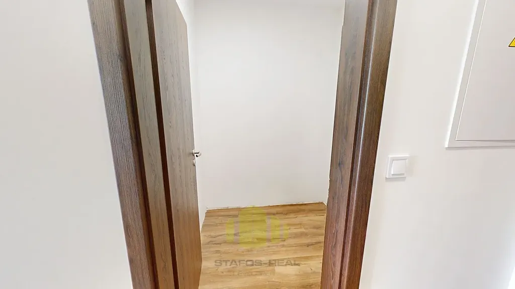 Co se týče samotného bytu, jeho jižní orientace zajišťuje dostatek světla v obývacím pokoji s kuchyňským koutem s přístupem na prostornou lodžii. Navíc, byt disponuje moderním zázemím včetně zádveří, koupelny s WC a šatny. Energetická účinnost bytu je zařazena do třídy B, což značí vysokou úspornost. Na výbavě jsme nešetřili – kvalitní vinylové podlahy, podlahové topení ve vybraných místnostech jsou samozřejmostí. Lednice není součástí.