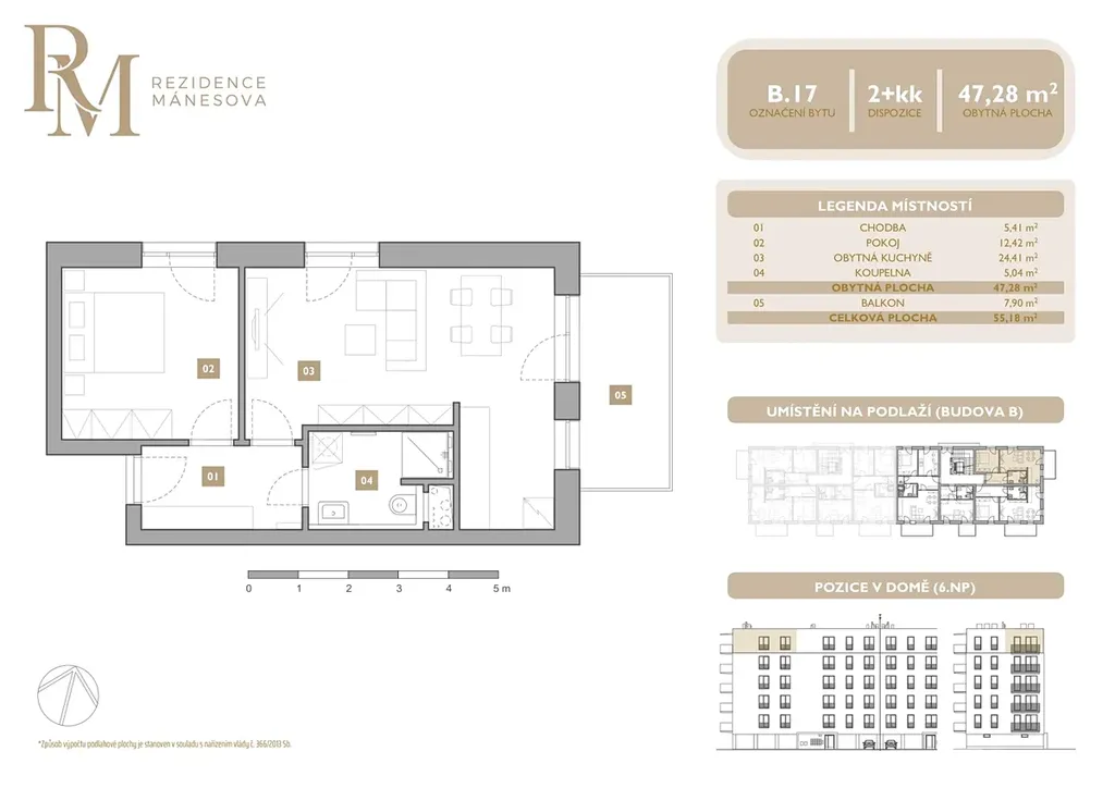 Součástí prodeje je nutnost zakoupení venkovního parkovacího stání, k bytu lze dále dokoupit sklepní kóji. Rezidence se nachází v klidné části města s kompletní občanskou vybaveností – obchody, školy, restaurace i zastávka veřejné dopravy jsou v docházkové vzdálenosti. Byty 2+kk kombinují kvalitní zpracování, příznivou cenu a moderní styl bydlení. Dokončení výstavby 12/2026.