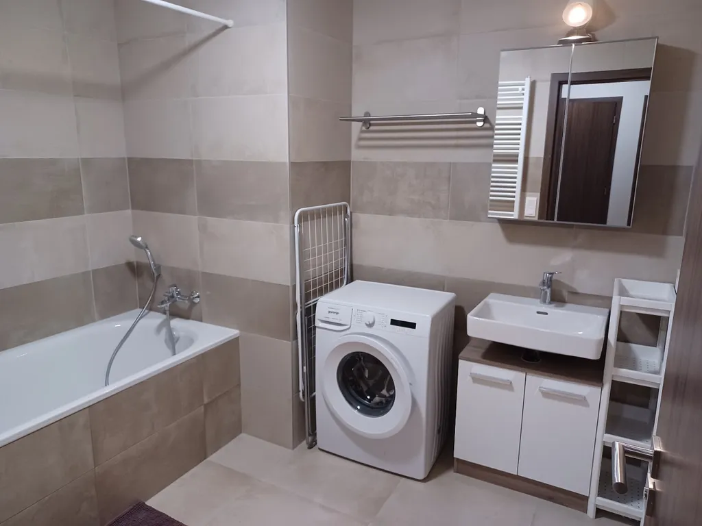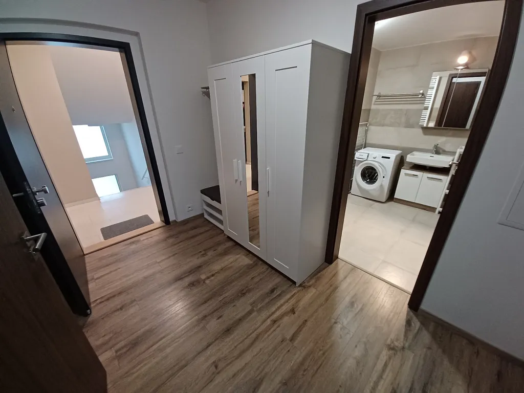 Nabízíme v rezidenci Nová Karolina k dlouhodobému pronájmu zařízený byt 2+kk o celkové ploše 73 m², lodžie 5,73m², skladu 2,97 m² včetně garážového stání v domě. Kuchyňská linka je vybavena sklokeramickou varnou deskou s digestoří, mikrovlnnou a elektrickou troubou, myčkou nádobí a lednicí s mrazákem. V obývacím pokoji je jídelní stůl se židlemi, rozkládací pohovka, křeslo, konferenční a TV stolek. V ložnici je dvoulůžková postel, noční stolky a skříň. Další úložné prostory jsou ve vstupní hale. Koupelna s vanou, umyvadlem a pračkou. Toaleta je samostatně. Veškerá občanská vybavenost v bezprostřední blízkosti. Pro více informací o této nemovitosti nebo sjednání prohlídky nás prosím kontaktujte nebo vyplňte níže uvedený formulář, rádi Vám pomůžeme.