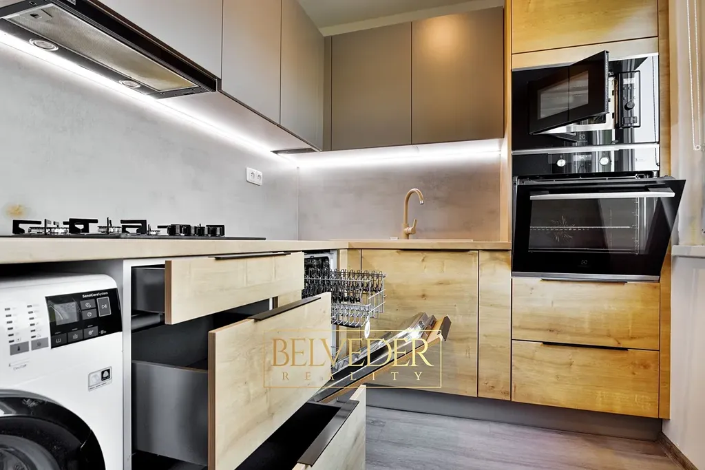 Velkou výhodou tohoto bytu je nejen klidná lokalita a skvělá dostupnost občanského vybavení, ale i skvělí sousedé a nadstandardní vybavení bytu, které je součástí pronájmu.