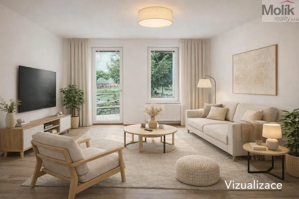 Byt je situován v přízemí a jeho největší předností je přímý vstup z obývacího pokoje na soukromou terasu, ideální pro odpočinek nebo posezení s přáteli.