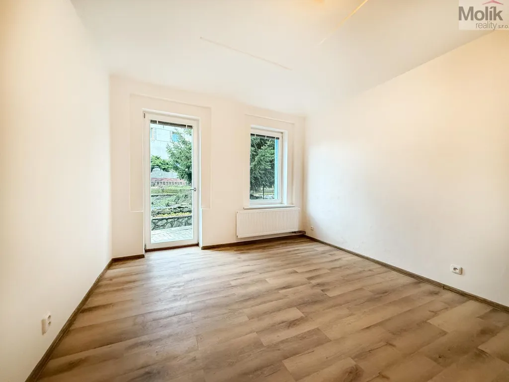 Byt je situován v přízemí a jeho největší předností je přímý vstup z obývacího pokoje na soukromou terasu, ideální pro odpočinek nebo posezení s přáteli.