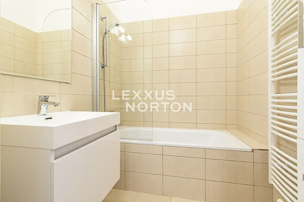 Mezi vybavení kuchyně patří indukční varná deska, trouba, mikrovlnná trouba, lednice s mrazákem a myčka nádobí. Koupelna disponuje vanou a pračkou. V bytě se nachází kvalitní dřevěné parkety.