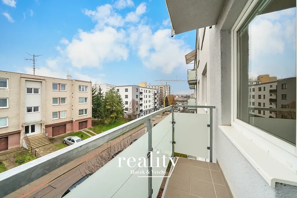 Dispozice je velmi praktická: obývací pokoj s přímým vstupem na balkon, samostatná ložnice, prostorná kuchyně, koupelna s vanou, oddělená toaleta a předsíň. Všechny místnosti jsou neprůchozí a poskytují dostatek soukromí i prostoru pro důmyslné dispoziční řešení.