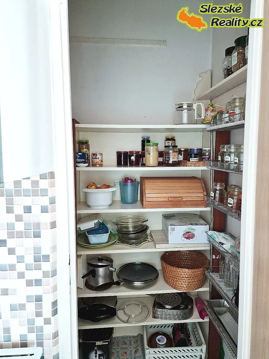 Kuchyň je vybavena praktickou spíží, která nabízí skvělý úložný prostor.