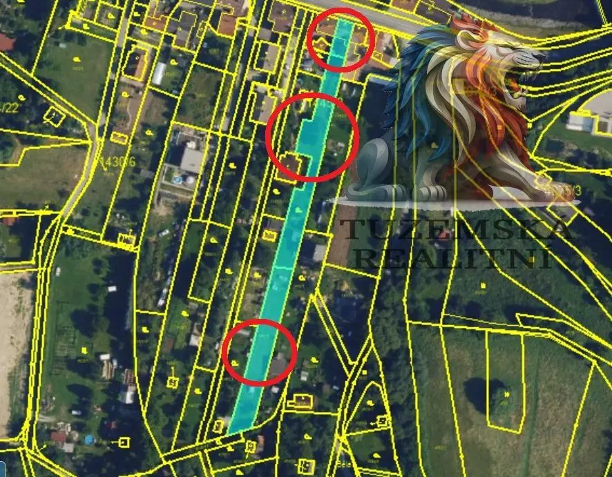 Stávající dům v přední části pozemku je možné zvětšit a zrekonstruovat dle Vašich představ. Okolní domy jsou jistě inspirací.