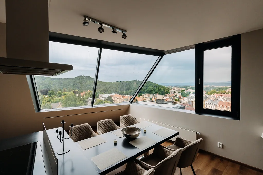 Střešní terasa 180 m² s výhledem na celé Karlovy Vary