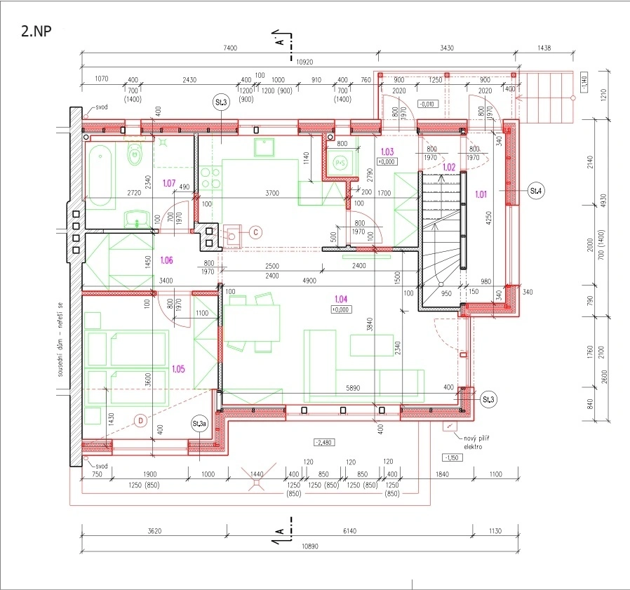 Součástí stávajících jednotek v 2. NP a 3. NP je lodžie o velikosti cca 5 m2.