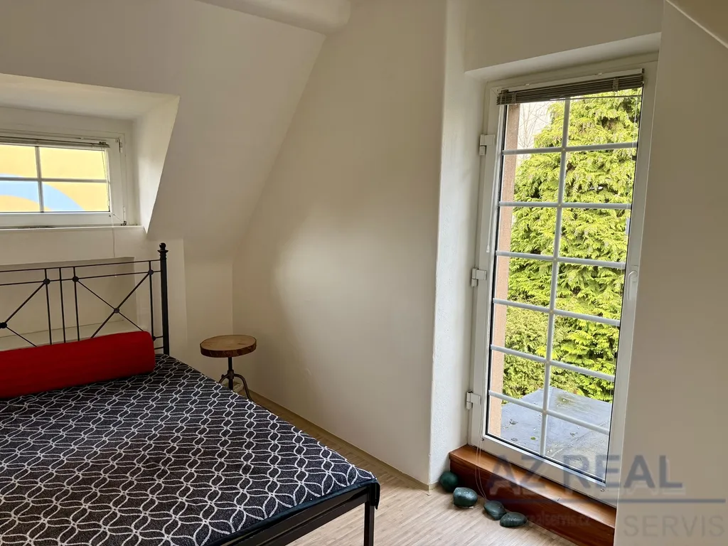 Dvě ložnice a menší podkrovní pokoj vhodný jako dětský pokoj, pracovna či šatna. Terasa navazující na ložnici je plánována k realizaci.