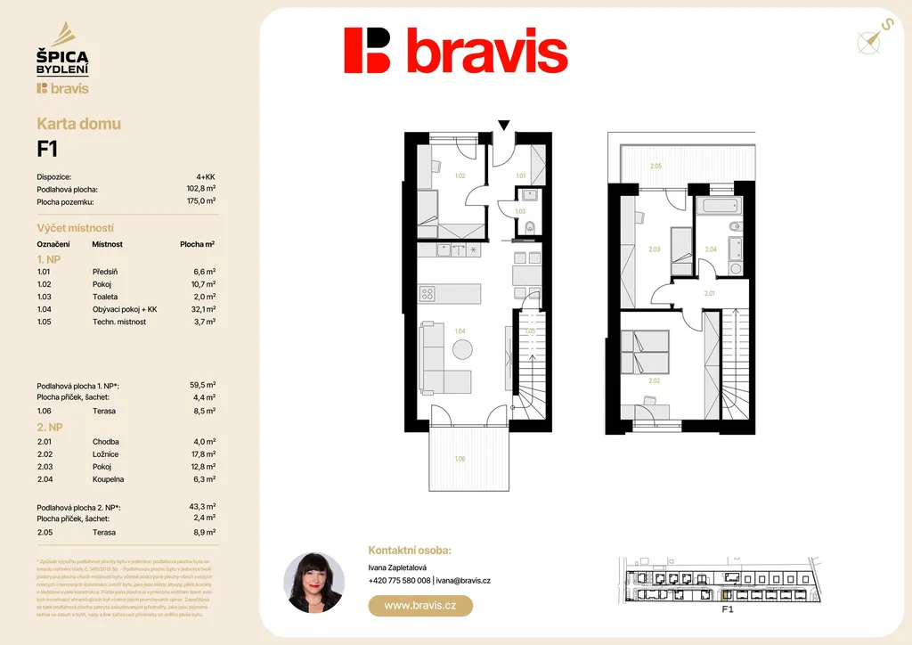 Nabízíme exkluzivní rodinný dům označený F1-1 o dispozici 4+kk, zahrada 56,3 m2 ,terasa 17,4 m2, v novém projektu Špica bydlení. Dům o celkové výměře 102,8 m2 na pozemku 175 m2.