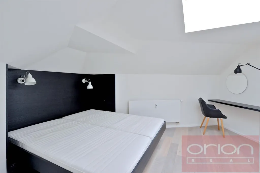 Nabízíme k pronájmu jedinečný klimatizovaný byt 2+kk (60m²) s dvěma terasami (40m² + 60m²) v 5. patře kompletně zrekonstruovaného domu s výtahem ve vyhledávané lokalitě Praha 3 - Vinohrady. Byt je zařízený a nabízí vstupní halu, prostorný obývací pokoj s plně vybavenou kuchyní, ložnici, koupelnu, toaletu. Na podlahách jsou dubové parkety a dlažba, byt je vybaven vestavěnými skříněmi, vinotékou, pračkou, sušičkou, má bezpečnostní vstupní dveře, plynový kotel. Lokalita s veškerou občanskou vybaveností, v blízkosti se nachází park Riegrovy sady, restaurace, obchody, na náměstí Jiřího z Poděbrad se konají pravidelně oblíbené farmářské trhy. Výborná dostupnost autem a MHD, stanice tramvaje a metra pár kroků od domu. Možnost pronájmu parkovacího stání za 6.500 Kč + DPH/měsíc. Nájem 2.033 EUR splatný v Eurech.