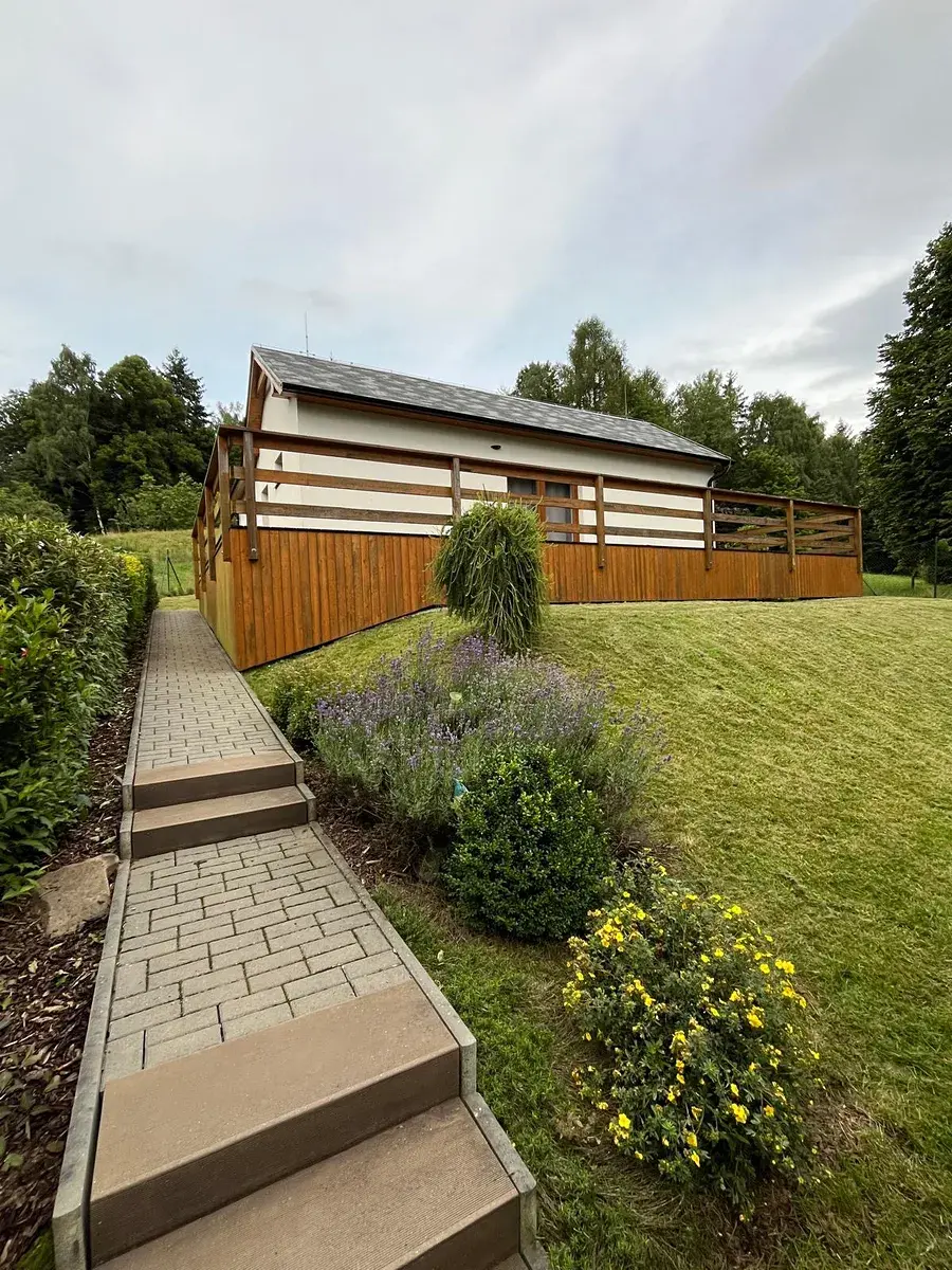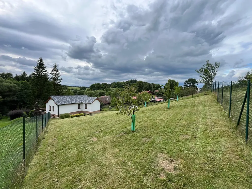 Z fotek je patrné, že pozemek je pečlivě udržovaný a jeho poloha na mírném svahu nabízí nádherné výhledy do okolní přírody.