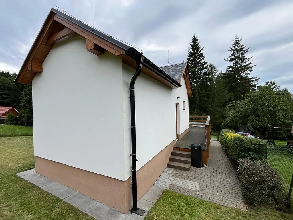 Hledáte dům, kde ráno slyšíte jen šumění lesa a potůčku, a přesto jste kousek od města? Tenhle moderní RD z roku 2019 stojí na jedinečném, svažitém pozemku o rozloze 2100 m², obklopený zelení, vzrostlými stromy a naprostým klidem.