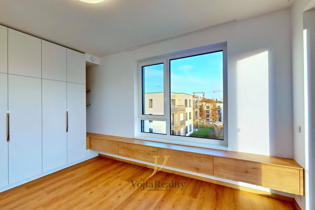 Ložnice disponuje vestavěným úložným nábytkem na míru a přímým vstupem na vlastní terasu. Další dva pokoje lze využít jako dětský pokoj a pracovnu. Koupelna je vybavena vanou, sprchovým koutem, dvojitým umyvadlem a úložnými prostory. Samostatná toaleta nabízí bidetové WC a malé umyvadlo. Praktickou součástí bytu je technická místnost s rekuperační jednotkou, která zároveň poskytuje prostor pro pračku, sušičku i další skladování.