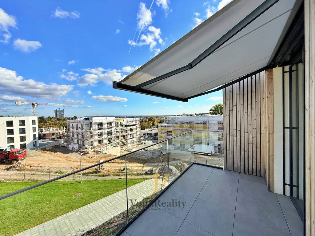 Nadstandardní vybavení zahrnuje podlahové topení v celém bytě, vinylové podlahy, bezfalcové dveře, rekuperaci, termostat v každé místnosti, venkovní žaluzie ovládané dálkově i přes systém Somfy TaHoma s možností chytré domácnosti, elektrické markýzy na obou terasách, chytré WiFi osvětlení, chytrý zvonek, garnýže i sítě proti hmyzu. Obývací pokoj je doplněn o elegantní TV stěnu s LED podsvícením.