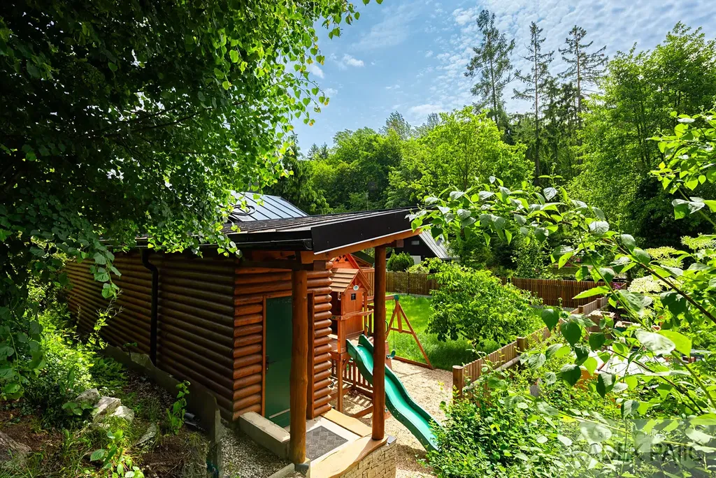 Prodej stylové chaty ve stylu srubu po kompletní rekonstrukci v trampské osadě Údolí Raků – klid, příroda a skvělá investice jen kousek od Prahy.