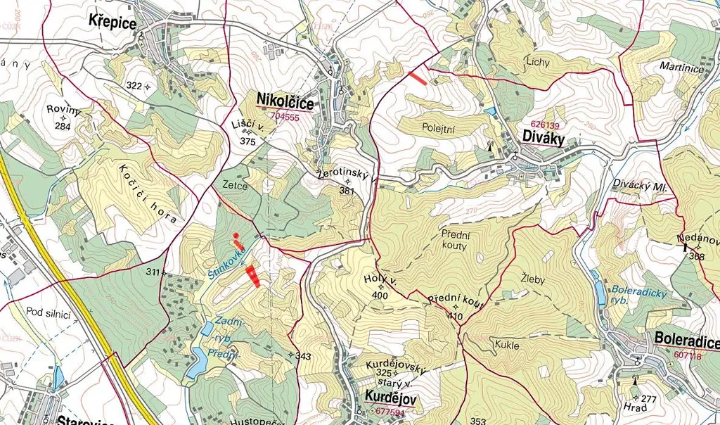 V KÚ Diváky pak na parcele č. 4111 na LV 344.