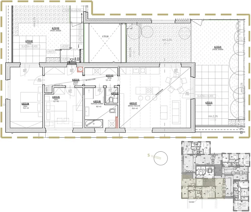 K nemovitosti náleží dvě prostorné terasy, předzahrádka a také praktická sklepní kóje (2,8 m²) přímo u vstupu. V ceně je zahrnuto i vyhrazené parkovací stání – vše již včetně DPH.