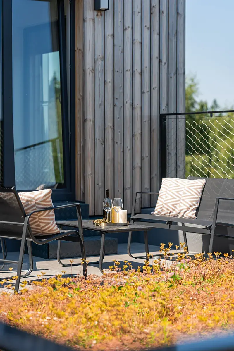 Nabízíme k prodeji exkluzivní dřevostavbu postavenou na střeše bytového domu - kompromis mezi bytem a domem s bezkonkurenčními výhledy. Jedná se o dispozici 3+kk a celkové výměře 89,1 m² dle NOZ (čistá užitná plocha 85,9 m²) a je orientován na všechny světové strany. K domu náleží dvě terasy, předzahrádka a samozřejmě sklepní kóje přímo na patře o velikosti 2,8 m². Cena zahrnuje i parkovací stání – vše je uvedeno včetně DPH.