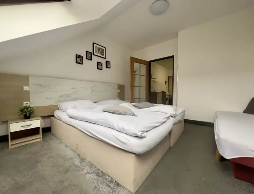 Byt se skládá z obývacího pokoje s kuchyňským koutem, samostatné ložnice, koupelny a toalety. Je plně vybaven – viz fotografie.