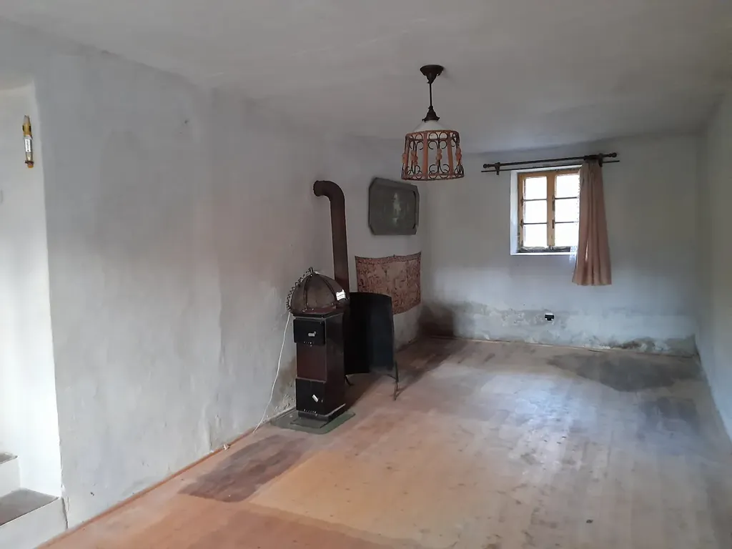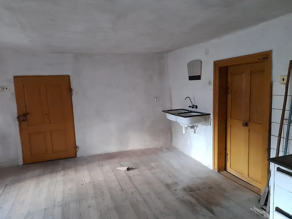 Na prodej šumavská chalupa v původním stylu – 2 místnosti, koupelna se splachovacím WC, komora, chodba. Nemovitost je částečně podsklepená, má nižší původní stropy, zárubně a dveře, podlahy v místnostech dřevěné, ostatní dlažba, voda přivedena do nemovitosti z vlastní studny. Střešní krytina je eternit na prknech ve velmi dobrém stavu, novější okapy a svody. El. 230/400 V, topení lokální na pevná paliva. Půda vhodná k půdní vestavbě. K nemovitosti přiléhá malý chlívek. Celková výměra 342 m2, z toho oplocená zahrada o ploše 200 m2, dobrý příjezd. Na dům navazuje nemovitost souseda. Předpoklad rekonstrukce.