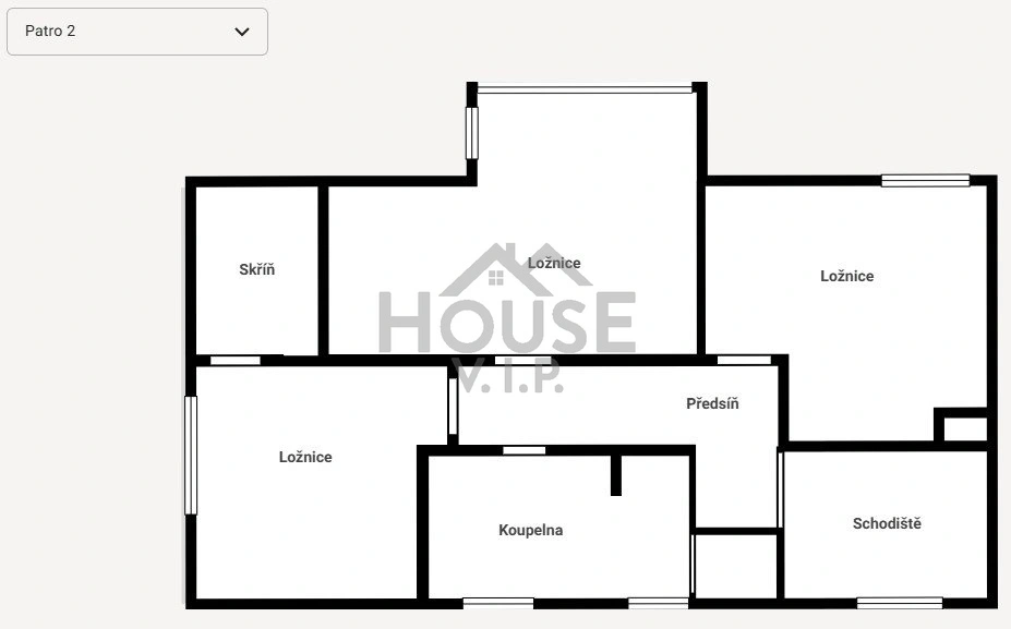 Ve druhém patře najdete tři ložnice, z nichž jedna má vlastní šatnu, a dále koupelnu s vanou i sprchovým koutem.
