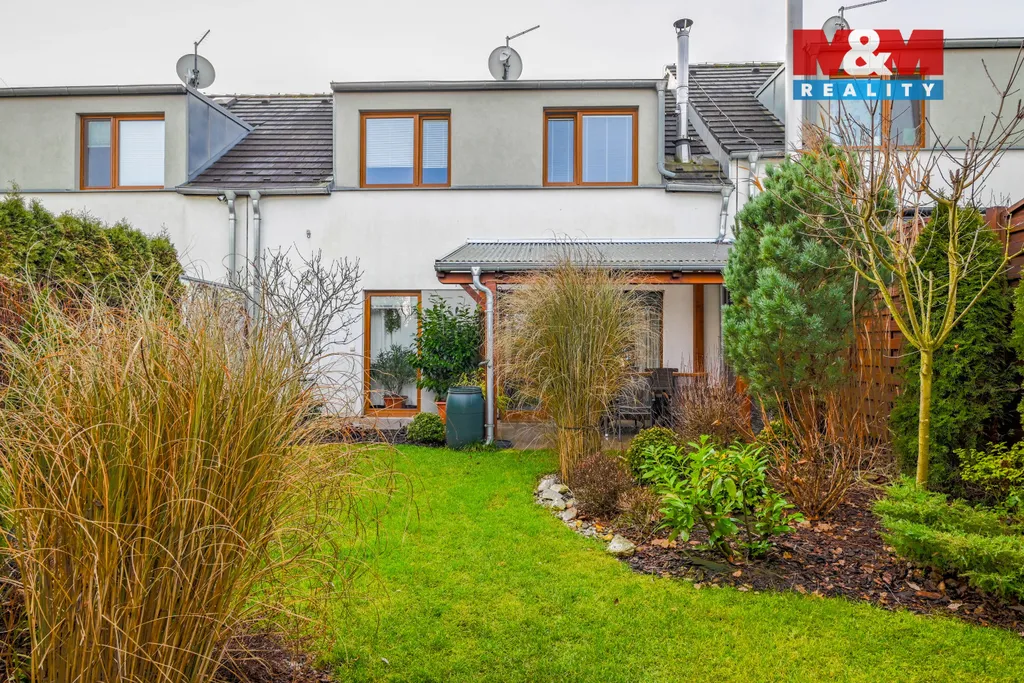 Nabízíme k prodeji řadový rodinný dům, nacházející se v klidné okrajové části města Plzně – Radobyčice. Dům je ideální volbou pro rodinné bydlení s výbornou dostupností do města, je dispozičně řešen jako 5+kk s garáží a má dvě NP. V 1.NP se nachází vstupní chodba, WC, tech. místnost, pracovna (ideální i jako pokoj pro hosty) a hlavní obytný prostor – otevřený obývací pokoj s kuchyní. Z obývací části je přímý vstup na terasu a do zahrady (okrasná zahrada se zahradním domkem na nářadí/palivo do krb. kamen), která krásně navazuje na obytný prostor a vytváří příjemné místo pro relax i posezení. 2. NP nabízí dvě ložnice, další pokoj (dětský pokoj/pracovna), tech. místnost a prostornou koupelnu s vanou, sprchovým koutem a WC. Dům je vytápěn plynovým kotlem nebo je možné topit krbovými kamny v obývacím pokoji, napojen na obecní vodovod i kanalizaci. Ohřev teplé vody je částečně řešen pomocí solárních panelů na střeše, což výrazně snižuje provozní náklady a dělá dům energeticky úspornějším.