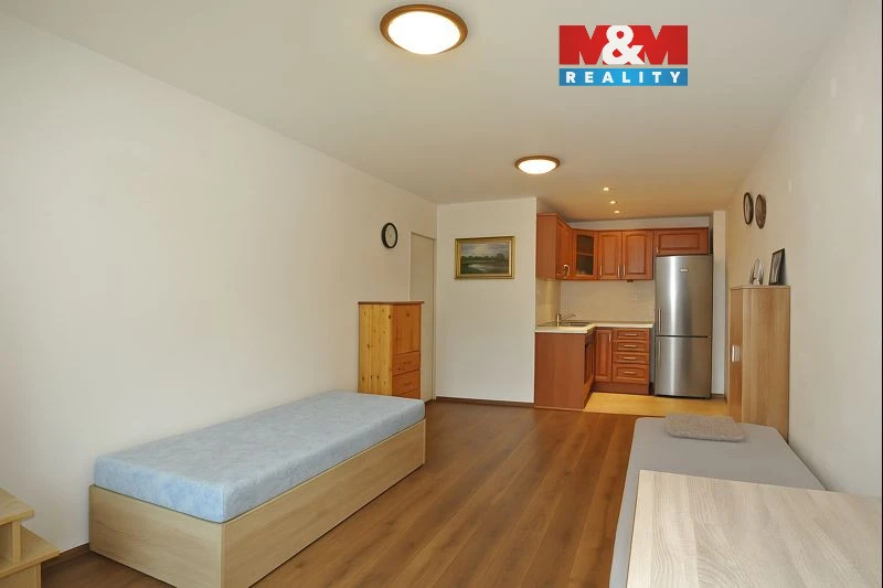 Byt se skládá z chodby s vestavnou skříní a je zde vstup do koupelny se sprchovým koutem, umyvadlovou skříňkou a pračkou. Samostatná toaleta s vlastním vchodem z chodby. Obývací pokoj s kuchyňským koutem. Kuchyně je vybavena elektrickým sporákem a lednicí. Dále je v bytě prostorná ložnice.