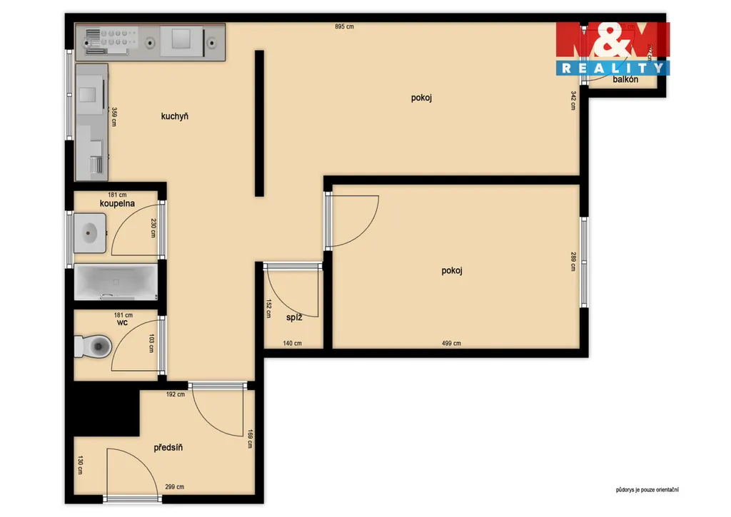 Byt je ve velmi dobrém stavu a nabízí moderní kuchyňskou linku.