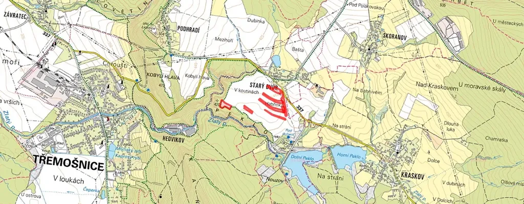 Jedinečná příležitost ke koupi orné půdy. Pozemky leží v katastrálním území Starý Dvůr v okrese Chrudim. Konkrétně jsou zapsány na listu vlastnictví 455 pod čísly parcel 259, 252, 263, 279, 258 a 271 a na listu vlastnictví 527 pod parcelními čísly 146 a 157.