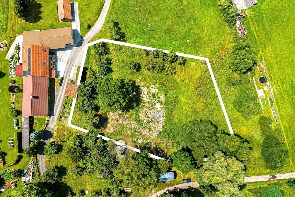 Pozemek leží v klidné části obce, na hezky prosluněném místě. Součástí nabídky je možnost rozšíření o starý ovocný sad s tradičními odrůdami a malé přírodní jezírko se zdrojem vody. Už teď je to místo, které má atmosféru – kus Šumavy.