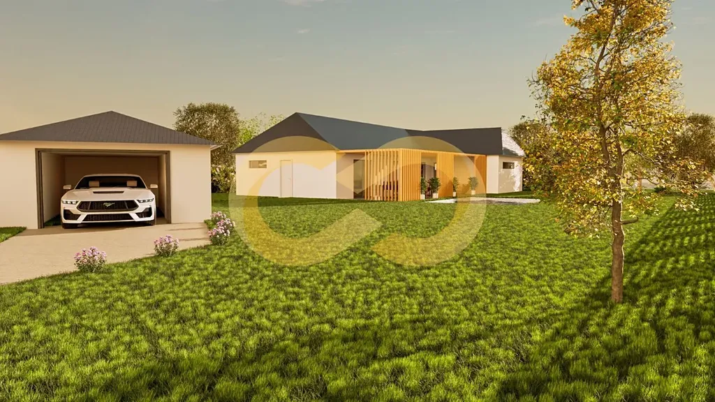 Součástí prodeje je stavební buňka s dispozicí 3+kk, kterou můžete využít jako zázemí při dokončování stavby. Připravená je i základová deska pro dvougaráž se skladem o výměře 52 m².
