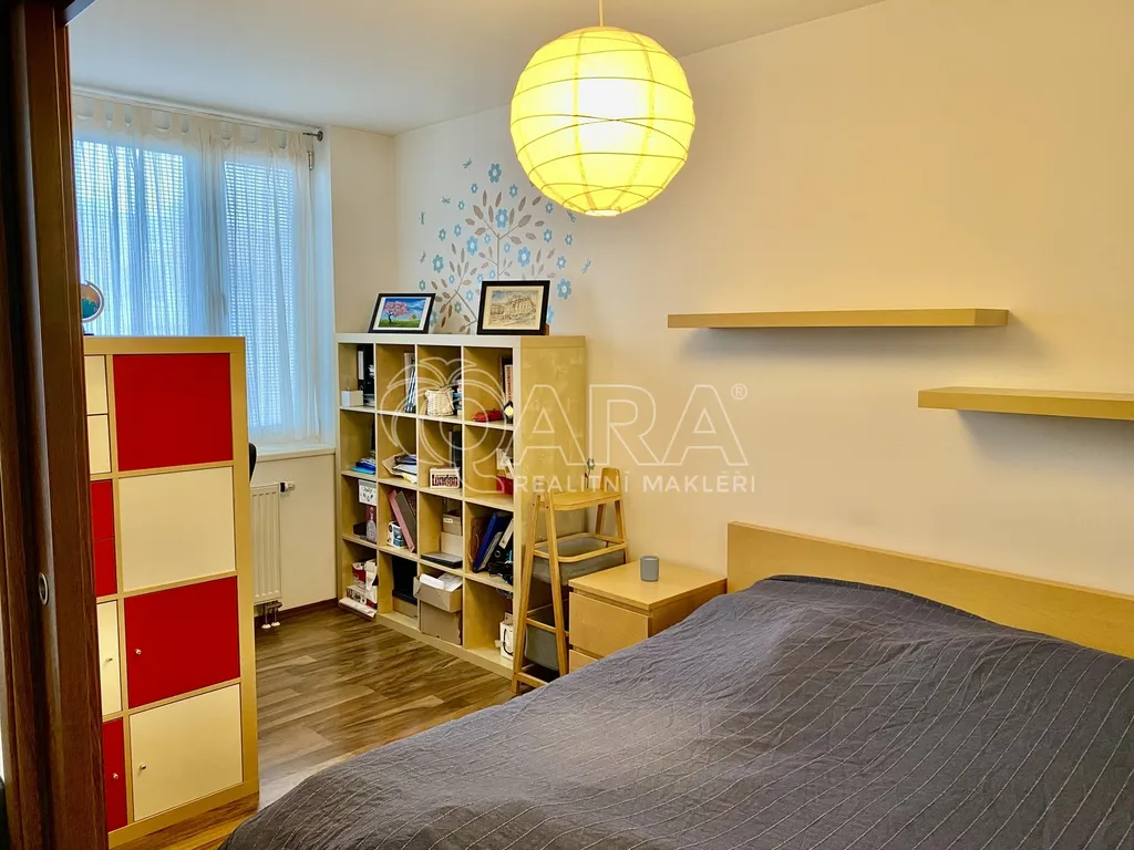 Velkou výhodou je právě jihozápadně orientovaný balkón. Obývací pokoj je od ložnice oddělen posuvnými dveřmi.