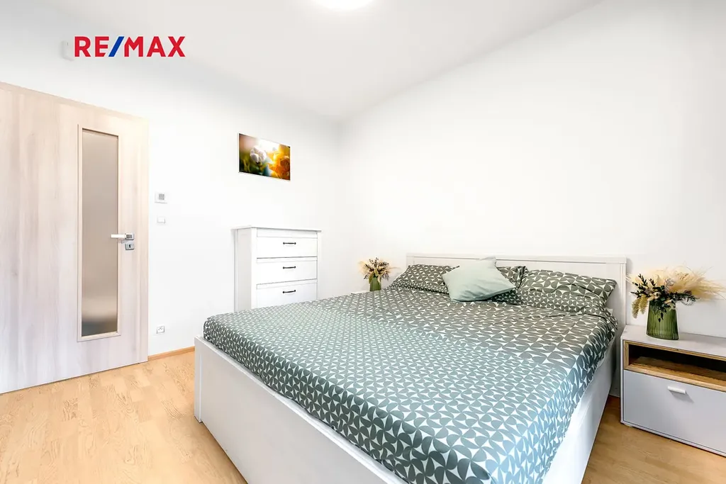 Jihovýchodně orientovaný byt o celkové ploše 62 m² se nachází ve 4. nadzemním podlaží moderní novostavby. Dispozice zahrnuje obývací pokoj (27,1 m²), ložnici (13,2 m²) a další pokoj (8,6 m²), který lze využít jako dětský pokoj nebo pracovnu. Dále se v bytě nachází samostatné WC, komora a vstupní chodba (ke bytu náleží také sklep v 1PP.