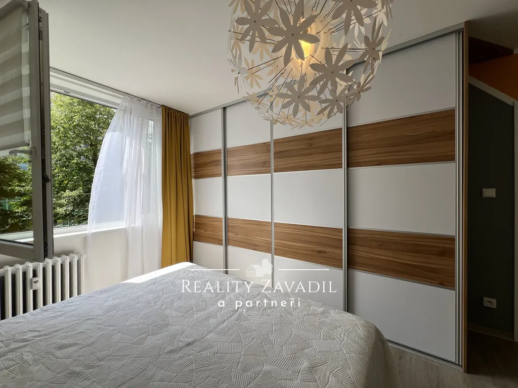 Vybaven je nábytkem dělaným na míru. V ložnici s krásným výhledem do zeleně se nachází manželská postel, šatní skříň a pracovní kout. V druhé místnosti je moderní kuchyňská linka včetně spotřebičů (chladnička, myčka nádobí, horkovzdušná trouba ) a obývací část vybavena sedací soupravou.