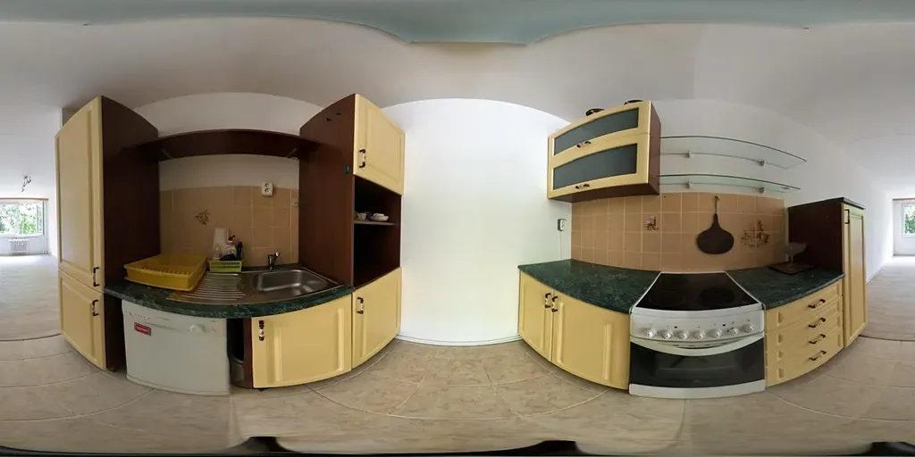Byt disponuje obývacím pokojem s kuchyňským koutem, vybaveným kuchyňskou linkou se spotřebiči – lednicí s mrazákem, varnou deskou, troubou, digestoří a myčkou. Ložnice i obývací pokoj se nabízejí bez vybavení. Koupelna je vybavena vanou, toaleta je samostatná.