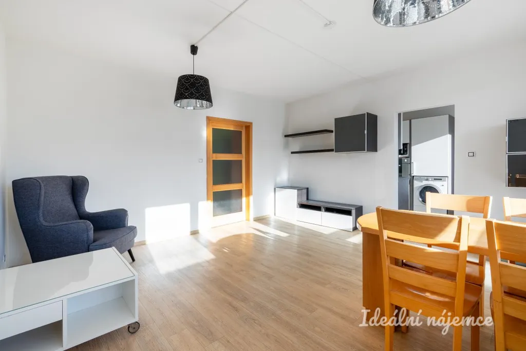 Byt se nabízí částečně vybavený. Kuchyně disponuje myčkou, pračkou, sušičkou, elektrickou troubou, plynovou varnou deskou, mikrovlnnou troubou a digestoří. Obývací pokoj je zařízený jídelním stolem s židlemi, konferenčním stolem, křeslem a skříňkami. Součástí prvního pokoje je skříň, v druhém pokoji najdeme skříň a knihovnu a poslední pokoj obsahuje skříň, pracovní stůl s židlí, postel a komodu. V koupelně je vana, umyvadlo, zrcadlo a koupelnová skříňka. Toaleta je umístěna samostatně. V chodbě jsou vestavěné skříně.