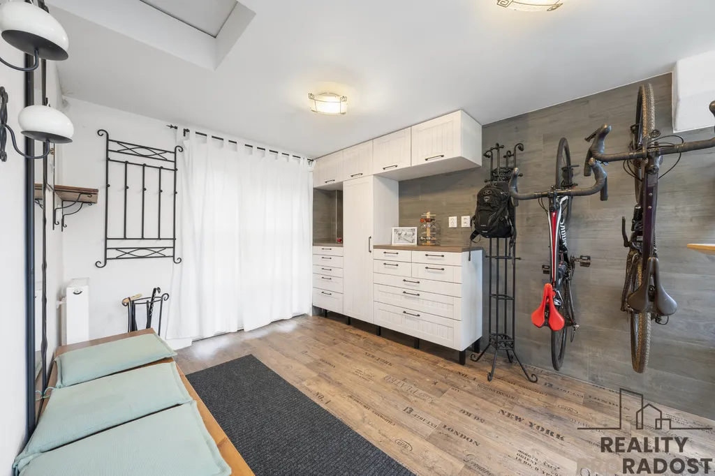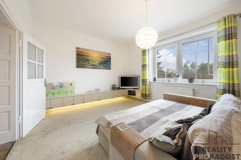 Velkou předností je rovinatý pozemek se zahradou o celkové výměře 656 m2, která poskytuje dostatek soukromí a prostoru pro relaxaci. V podkroví je navíc možnost vybudování minimálně dvou dalších pokojů – jsou zde již připraveny rozvody vody, elektřiny i topení.
