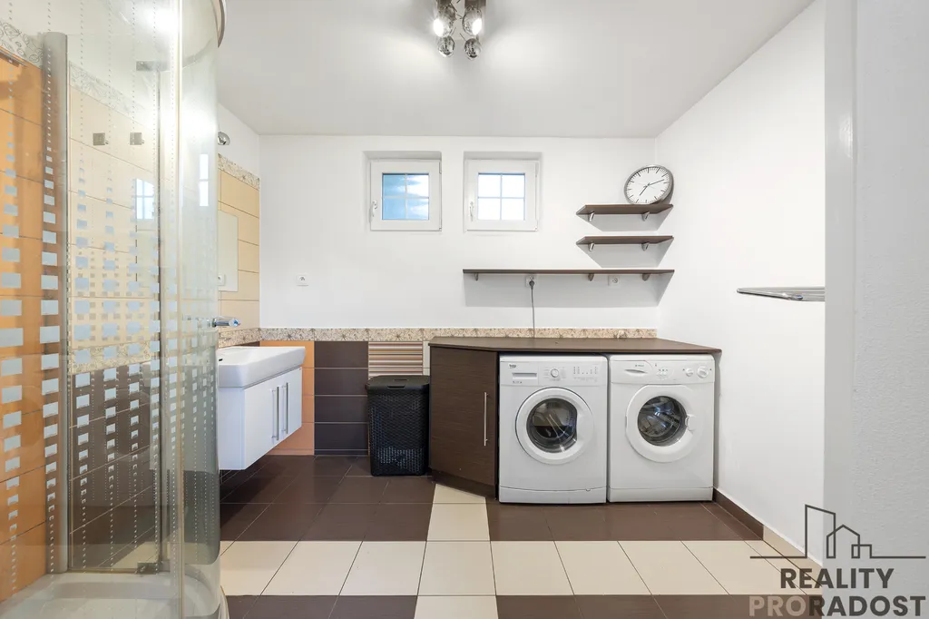 • 1. bytová jednotka: vstupní hala, kuchyně, obývací pokoj, ložnice, pracovna, koupelna, samostatné WC, sklad