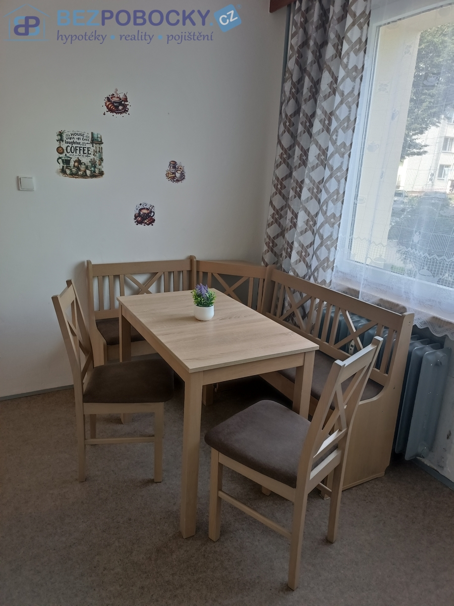 K úložnému prostoru poslouží sklep o rozloze 2 m2. Byt má původní jádro, je plně nově vybaven, kompletně vymalován a všude položeny nové koberce a je připraven k okamžitému nastěhování.