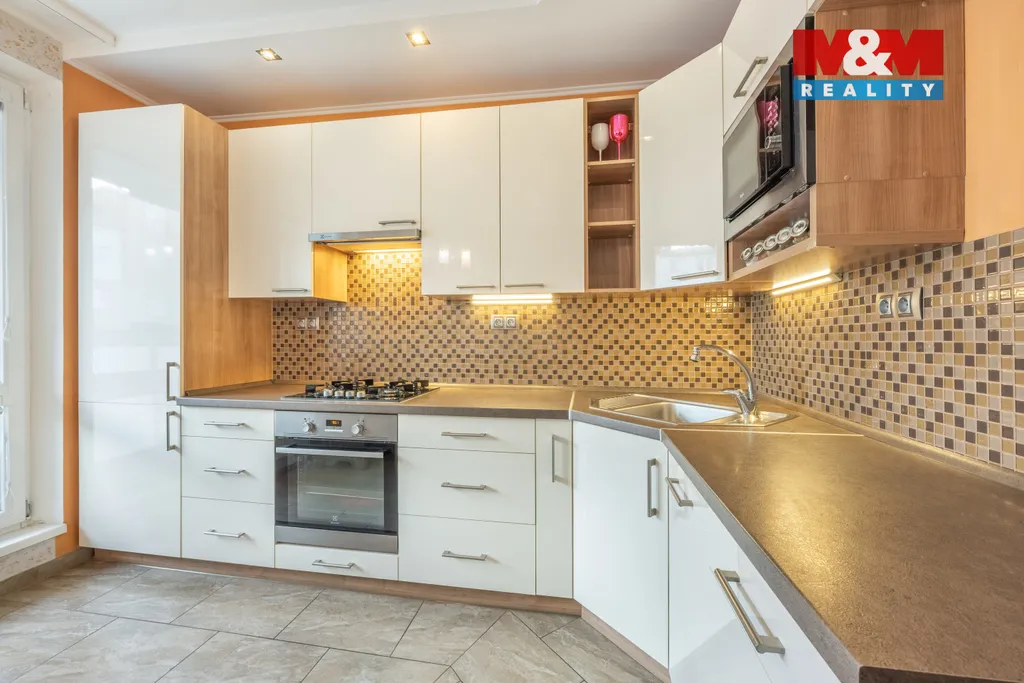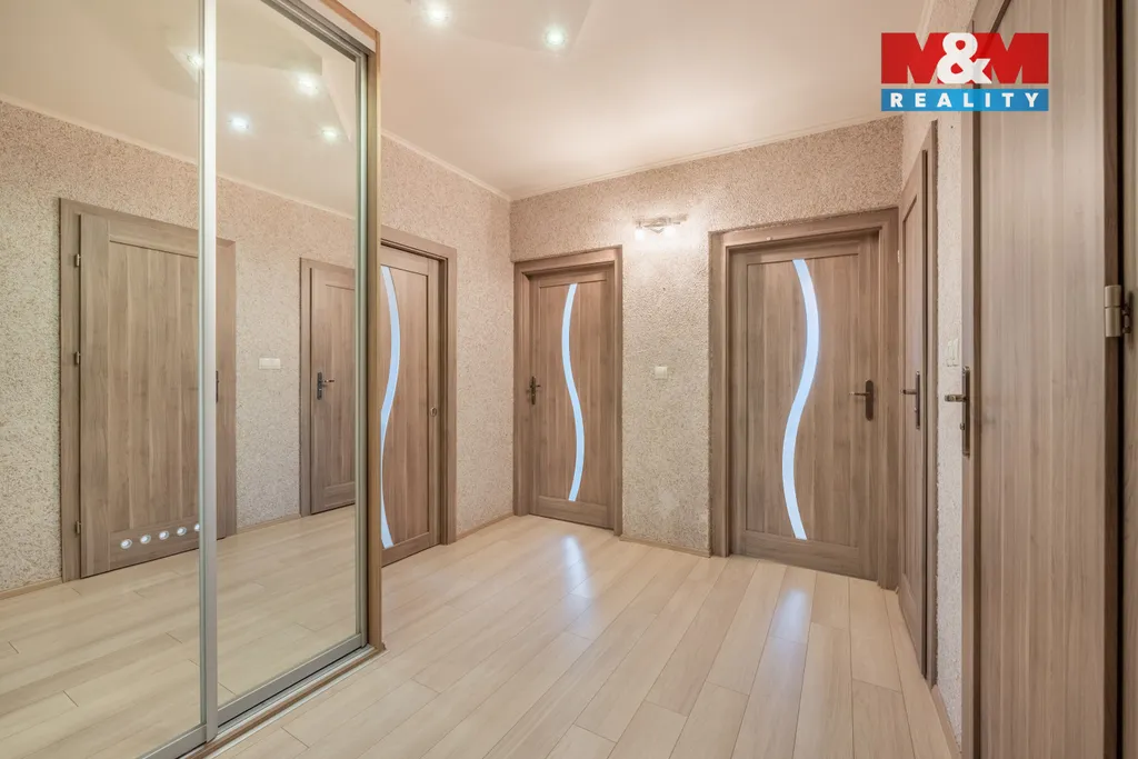 Dispozice bytu zahrnuje tři samostatné pokoje, kuchyň, koupelnu a samostatnou toaletu. K významným benefitům patří lodžie, sklep, prostorná vestavěná skříň v chodbě a komora přímo v bytě, které poskytují nadstandardní úložné prostory. Dům se nachází v klidné části sídliště s kompletní občanskou vybaveností v docházkové vzdálenosti. V okolí naleznete mateřské i základní školy, obchody, zdravotnická zařízení a sportovní vyžití, včetně aquaparku a zimního stadionu.