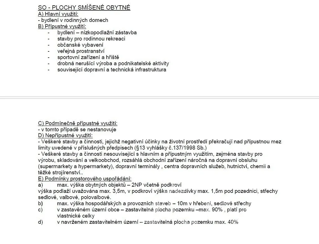 Popis pozemku: v platném územním plánu leží pozemek v „plochách smíšených obytných“, prvotně určených pro bydlení v rodinných domech. Ty zde mohou být dokonce dva. Pro ty je přivedeno i připojení dvou měření od distributora elektřiny E. ON. Z rovinatého pozemku s jižní orientací se otvírá krásný výhled - územní plán už další výstavbu v okolí nepovoluje, tím je zaručen klid, výhled a soukromí. Komunikační napojení je přímé na místní asfaltovou komunikaci. Pozemek je kompletně oplocený a podél komunikace je i kamenná podezdívka s rámovým pletivem do ocelových sloupků. Vodu je možné napojit z obecního vodovodního řadu vedoucí v přilehlé komunikaci. Obec nemá čistírnu odpadních vod, tak je třeba řešit individuálně vlastní ČOV. Elektřina přivedena na pozemek.