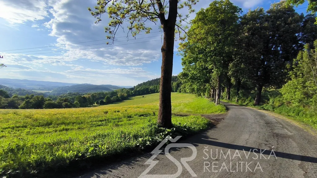 Hezká poloha je největší předností této nabídky. Pozemek je koncový, svažuje se od své horní hranice ke komunikaci, z níž lze řešit pohodlné komunikační napojení. Hraničí s okrajem městské zástavby a vzdálenější hranice už sousedí s volnou krajinou. Největší předností je výhled orientovaný západně do volné krajiny na vzdálené šumavské vrcholy. Jde o klidné místo pár minut pěší chůze od náměstí. Velkorysý prostor pro umístění stavby, klidné místo i výhled podtrhují spojení s mysticky krásnou šumavskou krajinou.