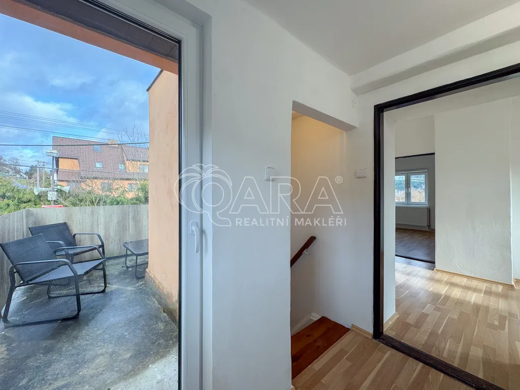 Dům je v dobrém technickém stavu a nabízí praktickou dispozici vhodnou pro rodinu či pár. V přízemí se nachází zádveří, chodba, koupelna se sprchovým koutem a WC, kuchyně a velmi prostorný obývací pokoj s jídelnou, odkud vedou balkonové dveře přímo na menší zahrádku. Po schodišti se dostanete do 2. NP, kde se nachází chodba, tři samostatné obytné pokoje a druhá koupelna se s vanou a WC. Topení je řešené plynovým kotlem a stejně tak ohřev vody. Parkovat je možné přímo před domem, kde je dostatek místa pro dvě auta. K domu náleží jedna garáž, kde je další parkovací stání a její měsíční nájemné činí 1.500,- Kč. Mimo jiné dům doplňuje sklep a kůlna (kolárna) pro skladovací prostory. Zahrada u domu umožňuje příjemné posezení nebo prostor pro menší zahrádku.
