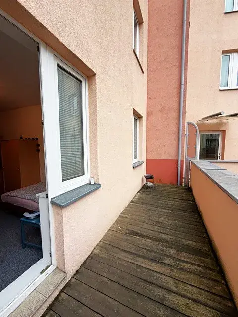 obývací pokoj s kuchyňským koutem a vstupem na balkon